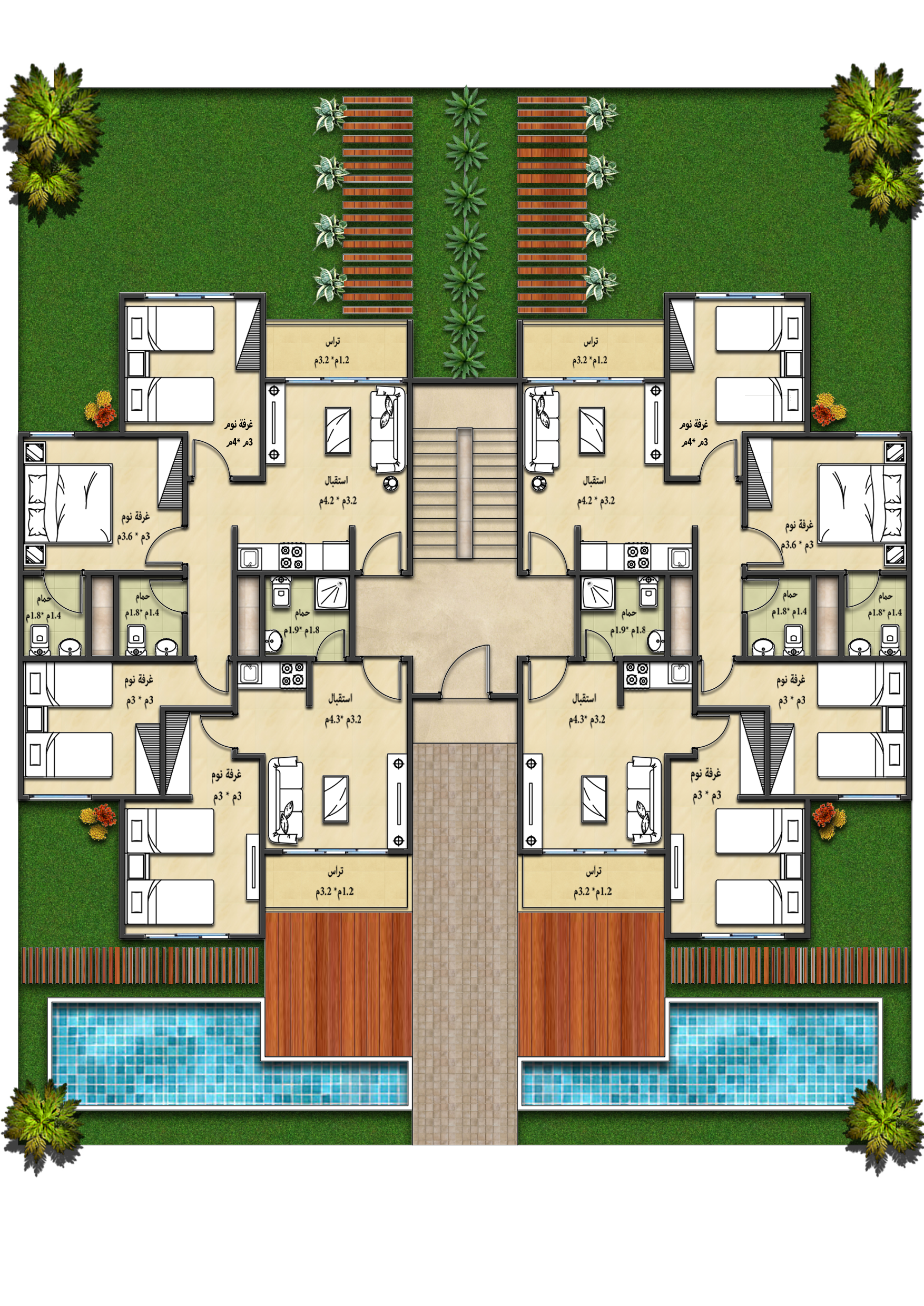 - Olympic swimming pools for all age groups. (Youth – Women – Children).